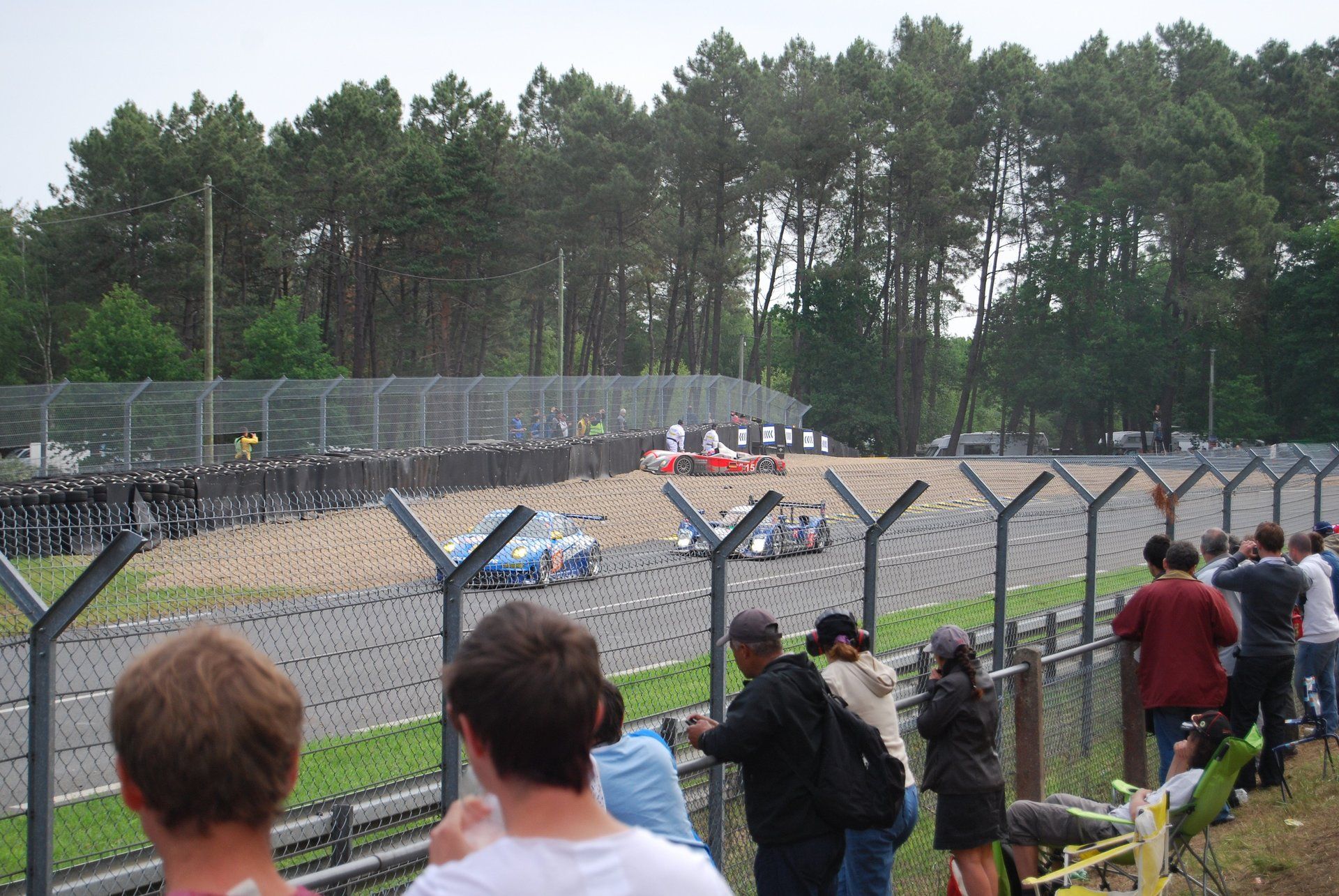 Well worth going here to see night practice or any time during the race. It is also very ethereal at about 0500 “O my God” time when it is sometimes slightly misty as the cars “roar” through the trees into the Indianapolis turn (or not as the case may be) then quickly arrive at Arnage Corner and then scream away up towards Porsche Curves some 3 kms up the road. A breakfast of sorts (coffee, omelette, frites and rubbish tomato sauce!) can be had from one of several temporary cafes just below the banking. Again this viewing area has a Circuit TV screen.