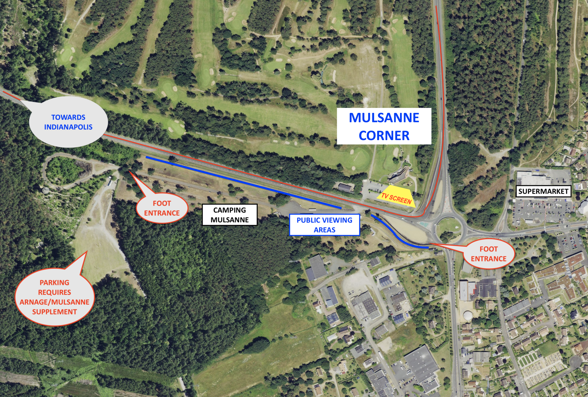 ROUTE - It is not very well sign posted. To get to Mulsanne go via Arnage/Indianapolis then continue down the D139 (this will be one way during the race). It is normally signposted.
