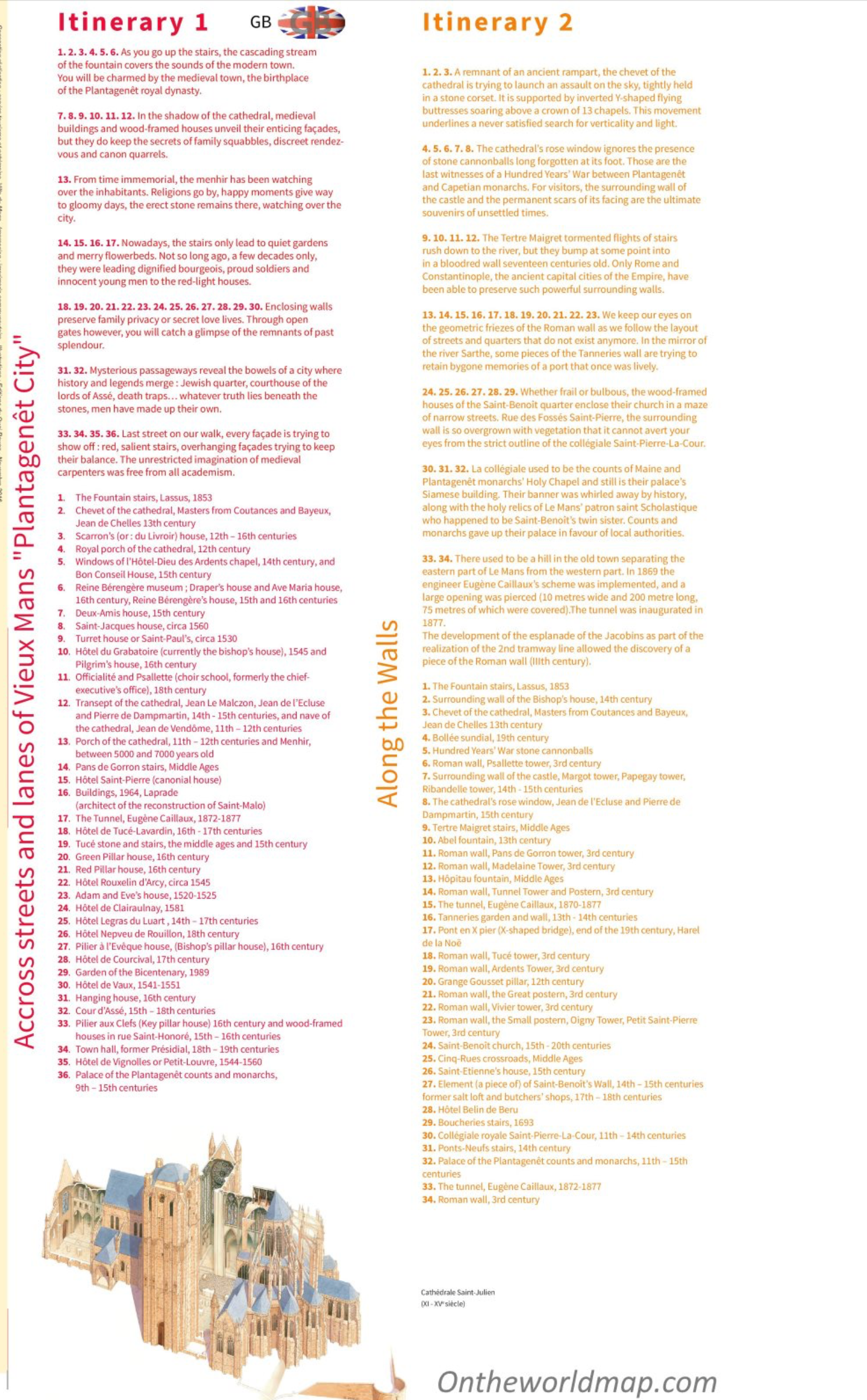 Start your visit at La Maison du Pilier-Rouge, one of many half-timbered properties in the historic quarter, and now home to the Tourist Office, to pick up annotated maps or book a guided tour. Must-see sites include Geoffrey and Matilda’s wedding venue, Saint-Julien Cathedral, with its glorious chapel decorated with 47 music-playing angels; the remains of the Roman baths; and the Carré Plantagenêt museum of local history and archaeology."