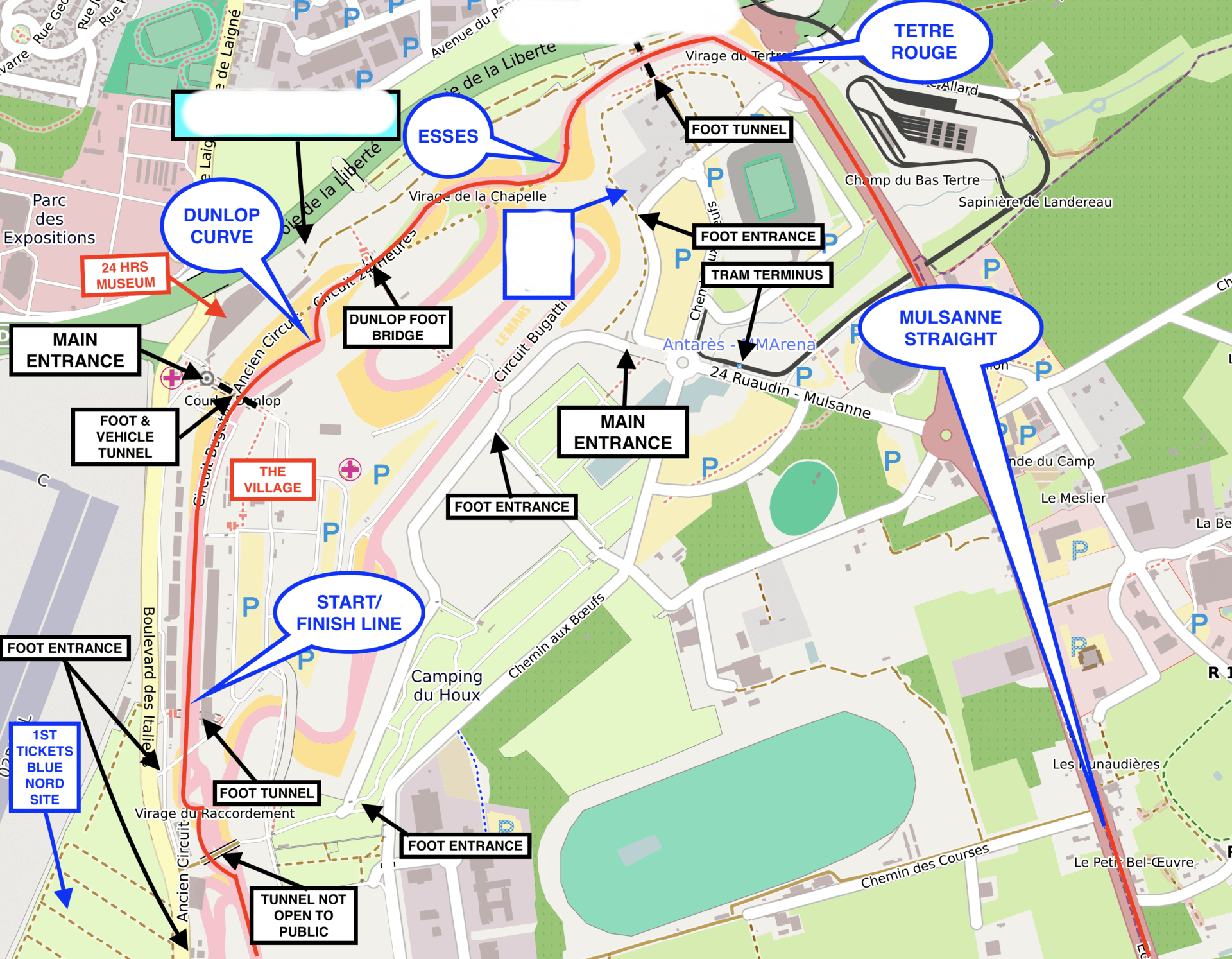 DISTANCE - Start Line to Tertre Rouge is about 20-25 minutes walking time.